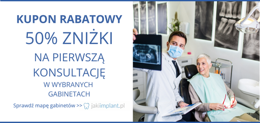 Na hasło JAKI IMPLANT w wybranych gabinetach pierwsza konsultacja 50% tańsza!
